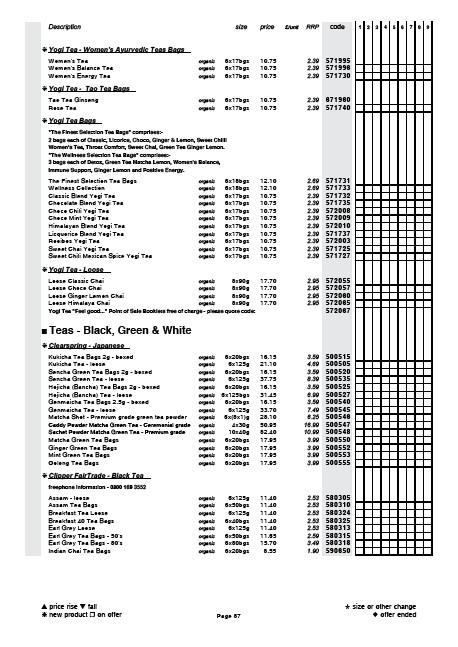 Description size price £/unit RRP code 1 2 3 4 5 6 7 8 9