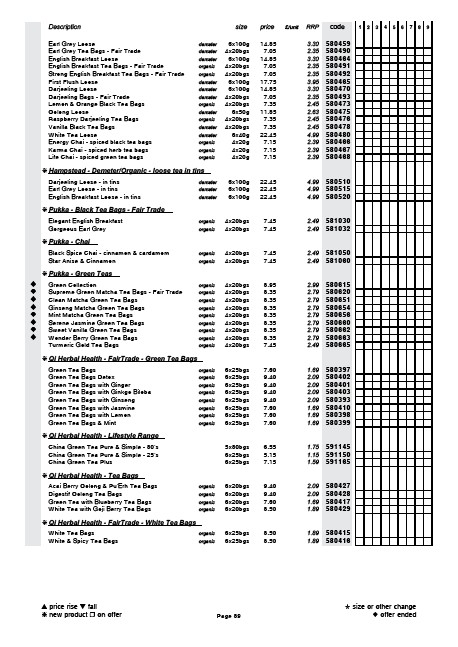 Description size price £/unit RRP code 1 2 3 4 5 6 7 8 9