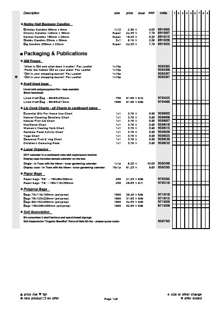 Description size price £/unit RRP code 1 2 3 4 5 6 7 8 9