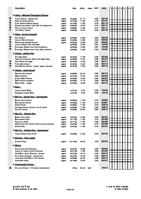Description size price £/unit RRP code 1 2 3 4 5 6 7 8 9